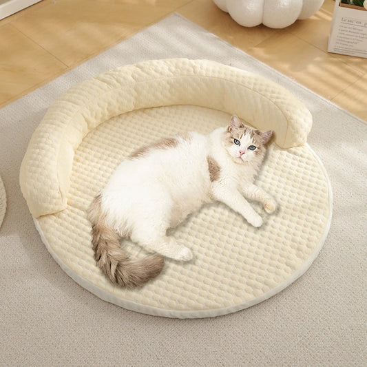 Round Pet Cooling Mat - Absorbs Heat & Cools Body | Breathable, Non-Slip Dog & Cat Bed with Head Support