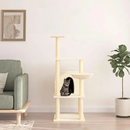 Soft & Sturdy Beige Cat Tree with Plush Perches & Condo