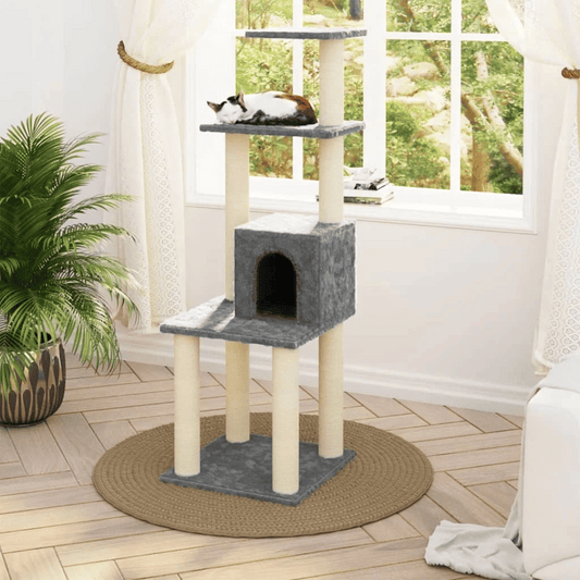 Dark Grey Cat Tree with Condo, 2 Perches & Scratching Posts
