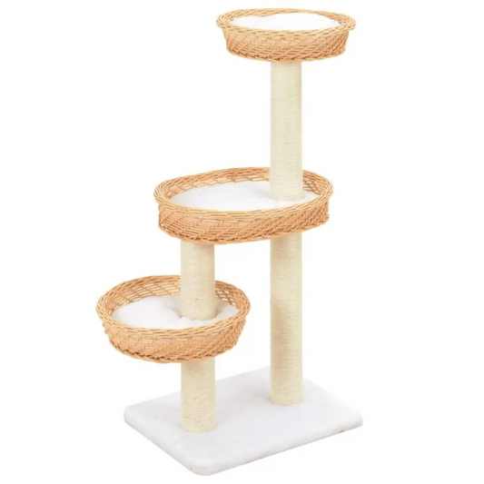 Aesthetic Cat Tree with Wicker Basket Perches & Sisal Scratching Posts