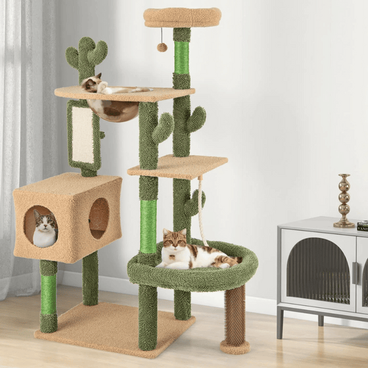 Plush Cactus Cat Tree Play Tower with Nest & Perches