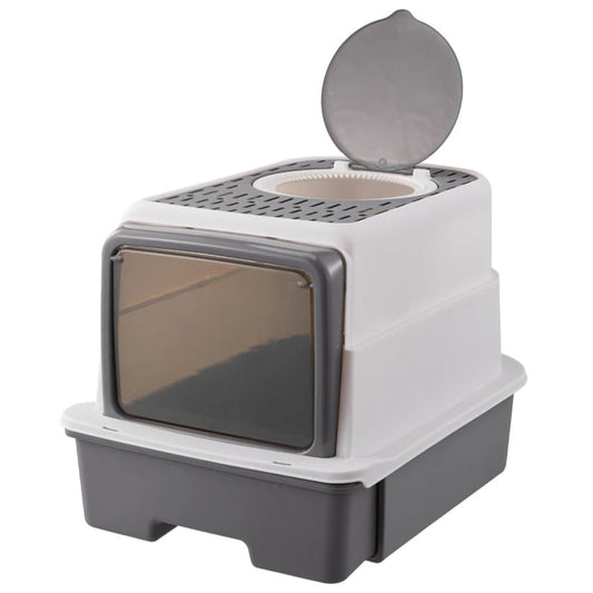 High-Sided Semi-Enclosed Cat Litter Box made from Durable Plastic | Scoop Included