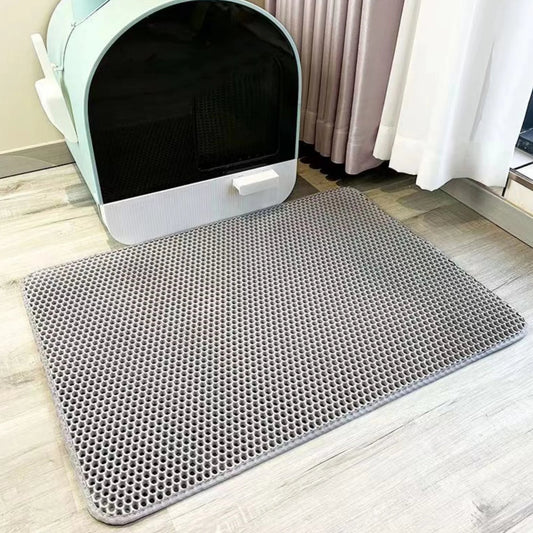Honeycomb-Style Cat Litter Box Mat with Waterproof Double Layer to Trap Litter & Moisture