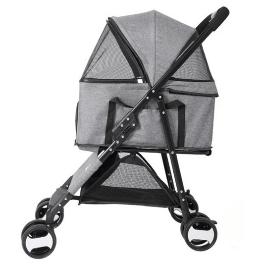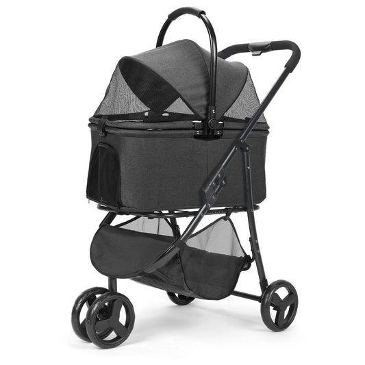 Convertible Canopy Dog Stroller with Detachable Carrier Basket Car Seat, Storage & Cup Holder