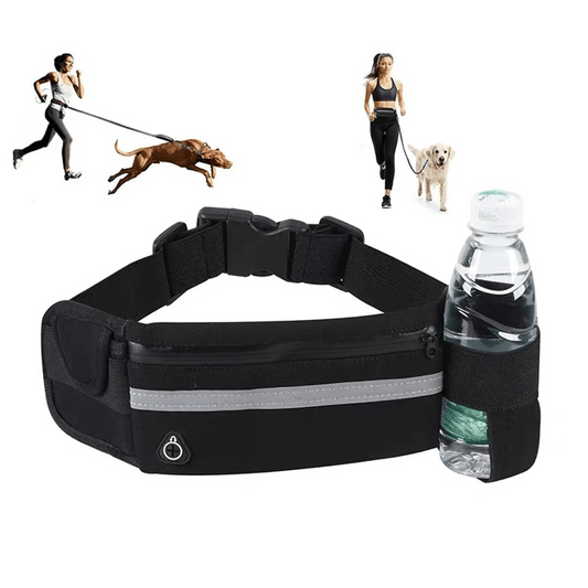 Running Dog Leash Waist Bag with Hands-Free Bungee, Bottle Holder & Secure Zips
