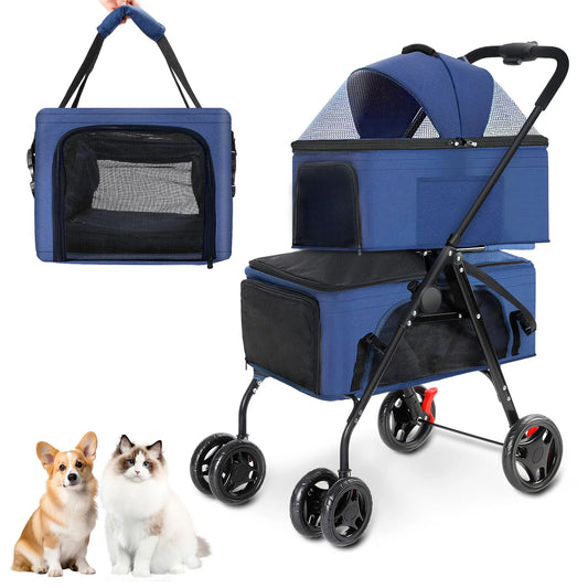 Detachable Double Basket Pet Stroller for Dogs & Cats with One-Touch Fold