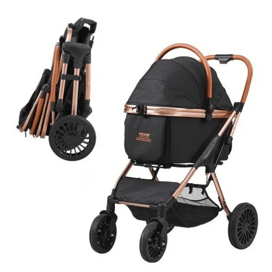 Easy-Fold Dog Stroller with Detachable Carry Basket for Small & Medium Sized Dogs