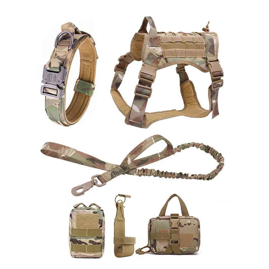 Large Dog Military-Style Dog Harness with Collar, Leash & Pouch Set | Tactical Dog Training Vest